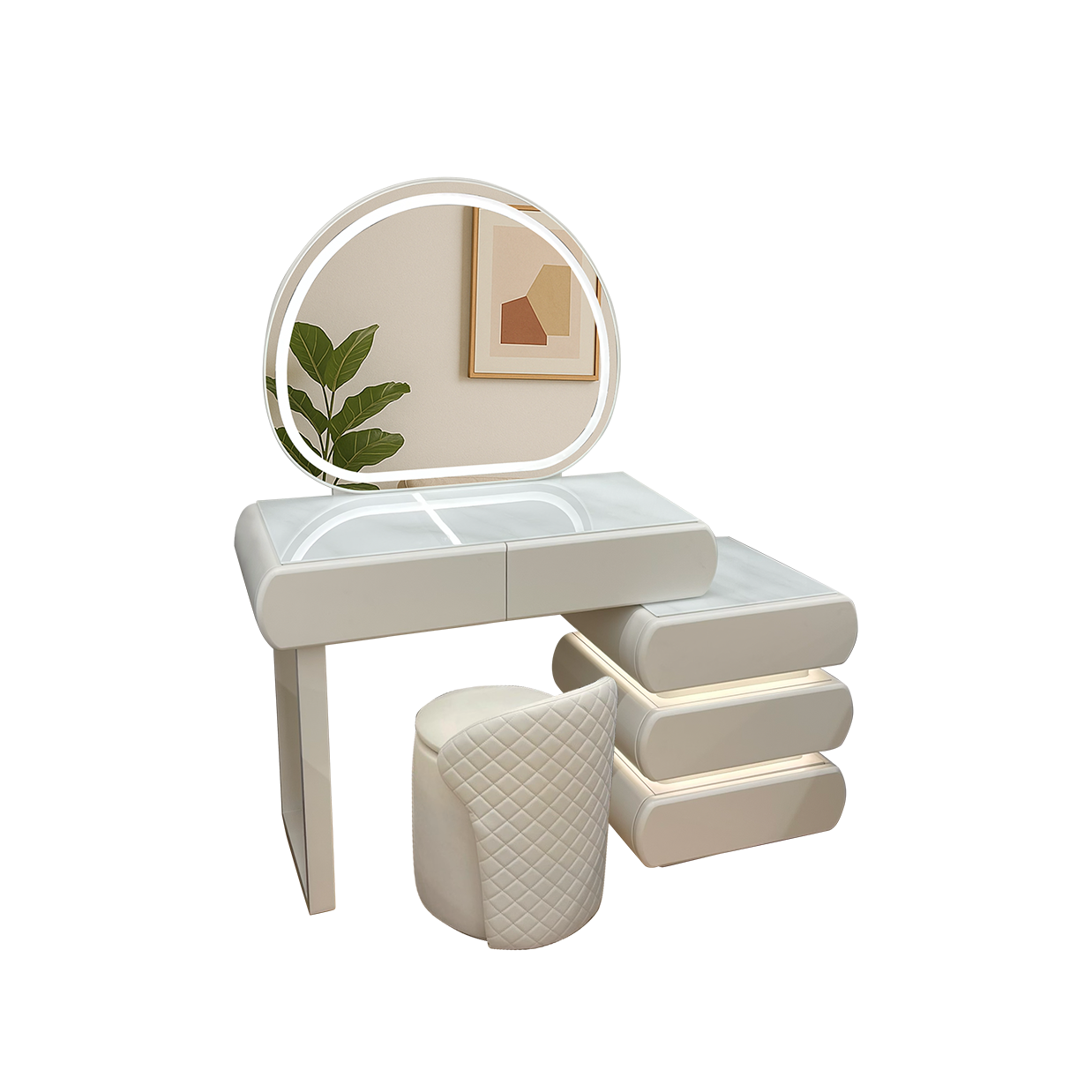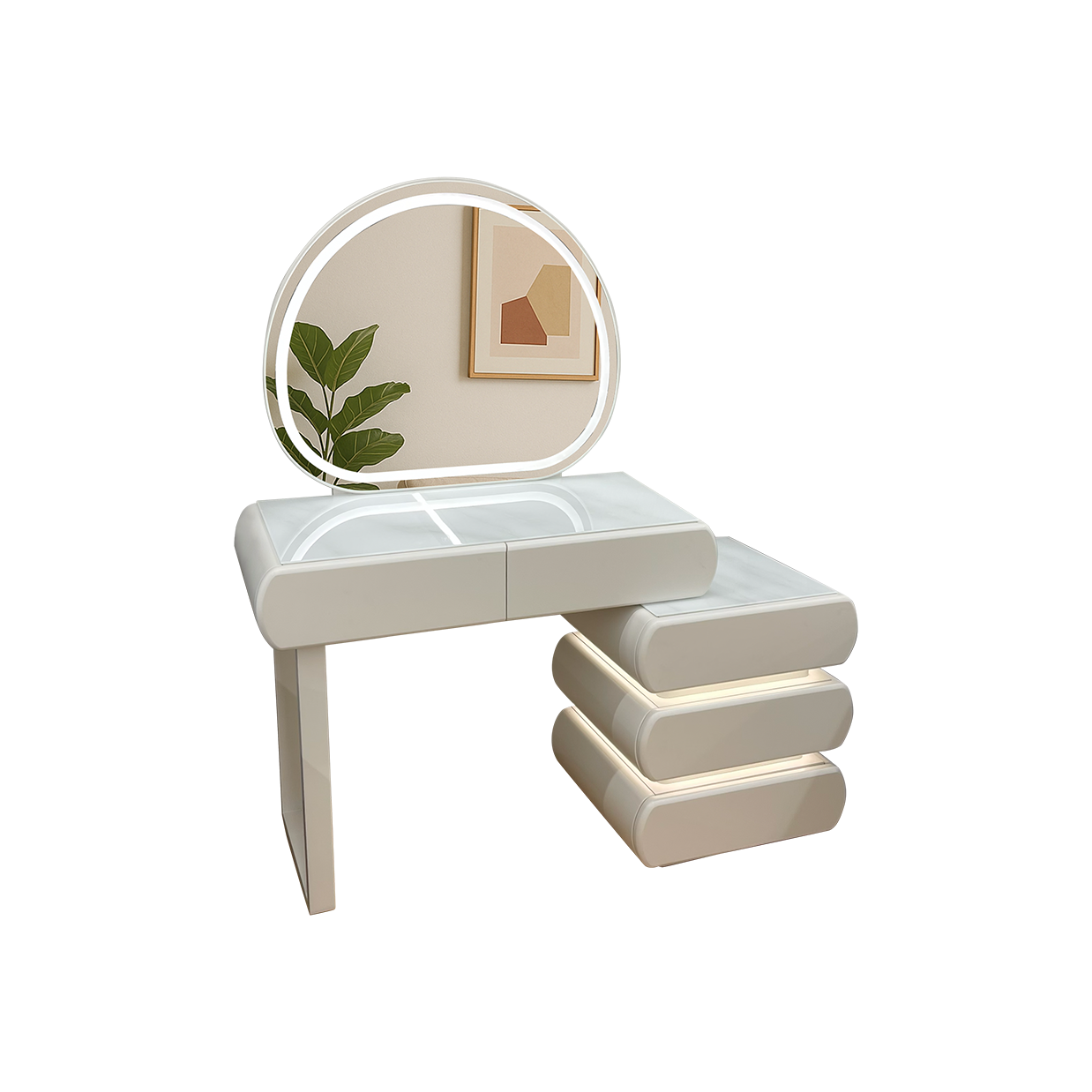 Emma (エマ) 3色切替LED照明付きドレッサー/ミラー&テーブル ※スツール別売