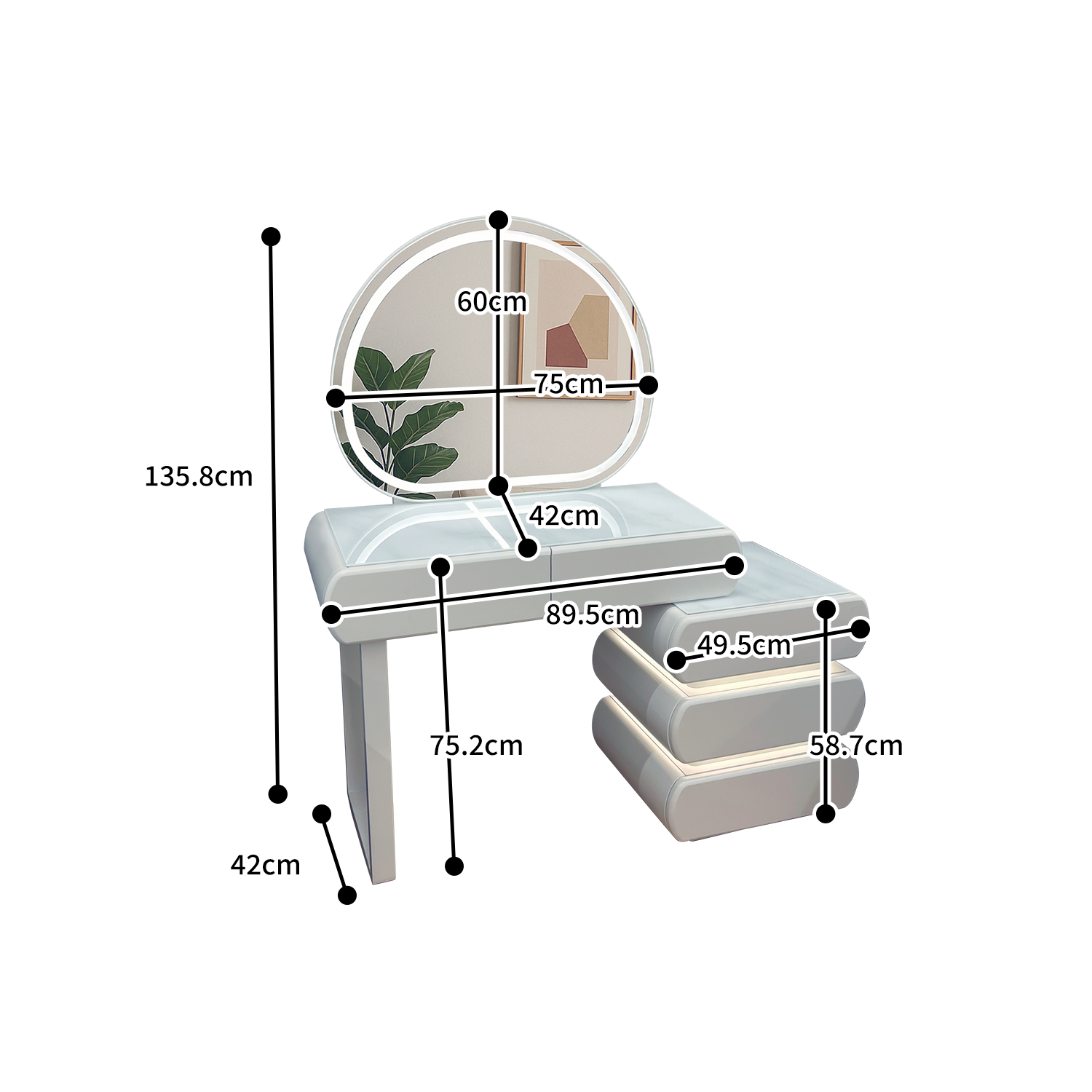 テーブル:W1120-1170mm × D420mm × H1358mm