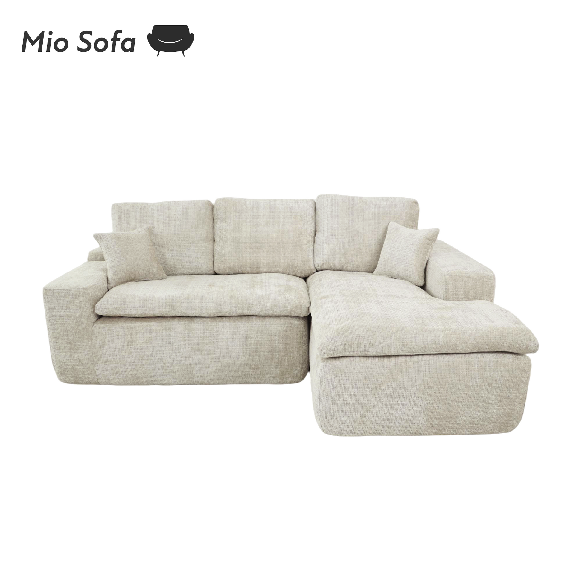 This sofa has a lift-up storage space and the left and right couch sections can be rearranged.
