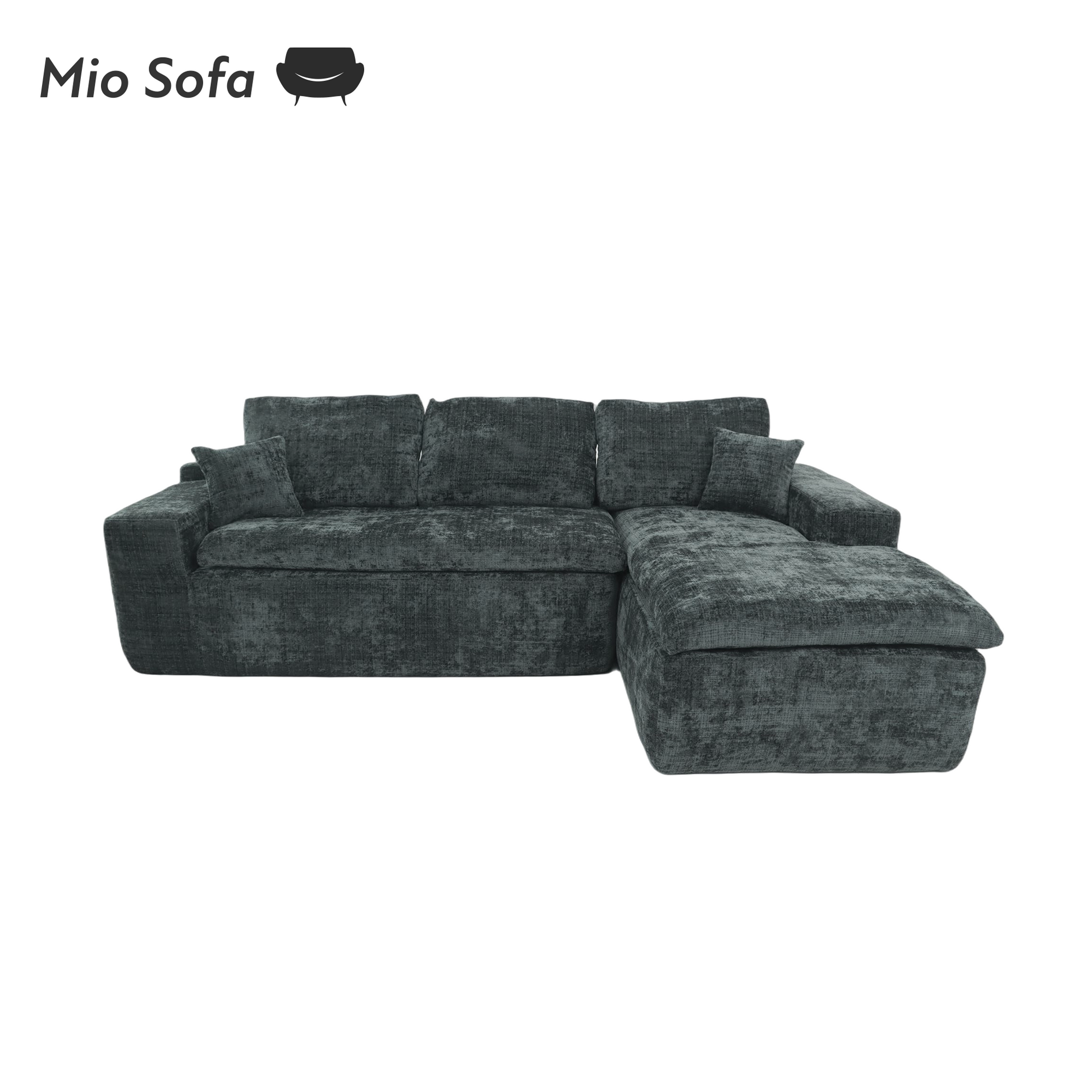This sofa has a lift-up storage space and the left and right couch sections can be rearranged.