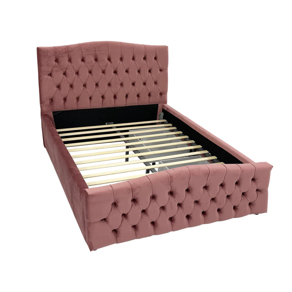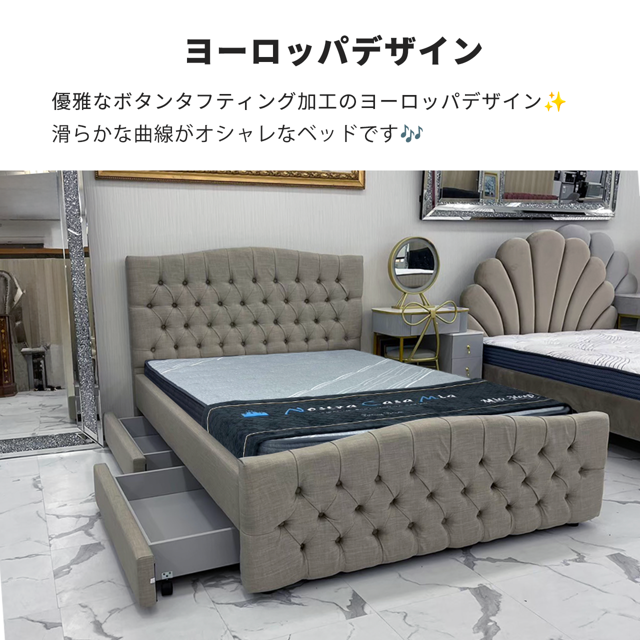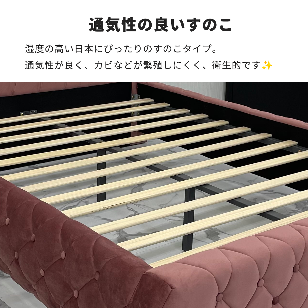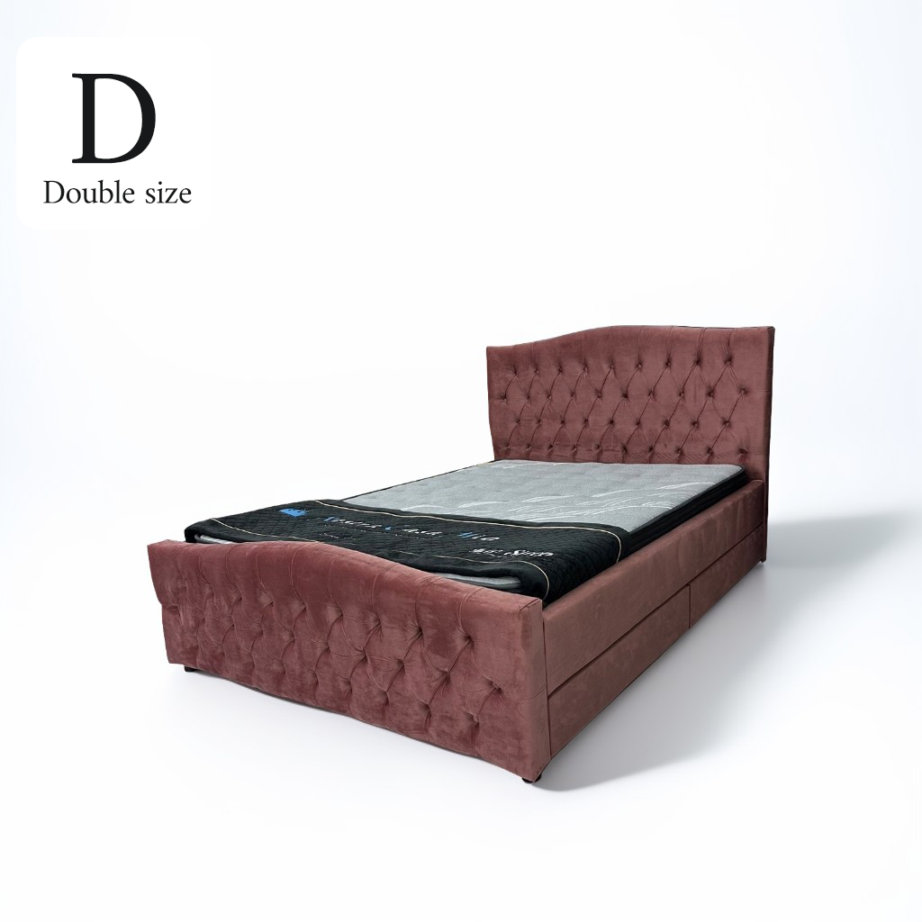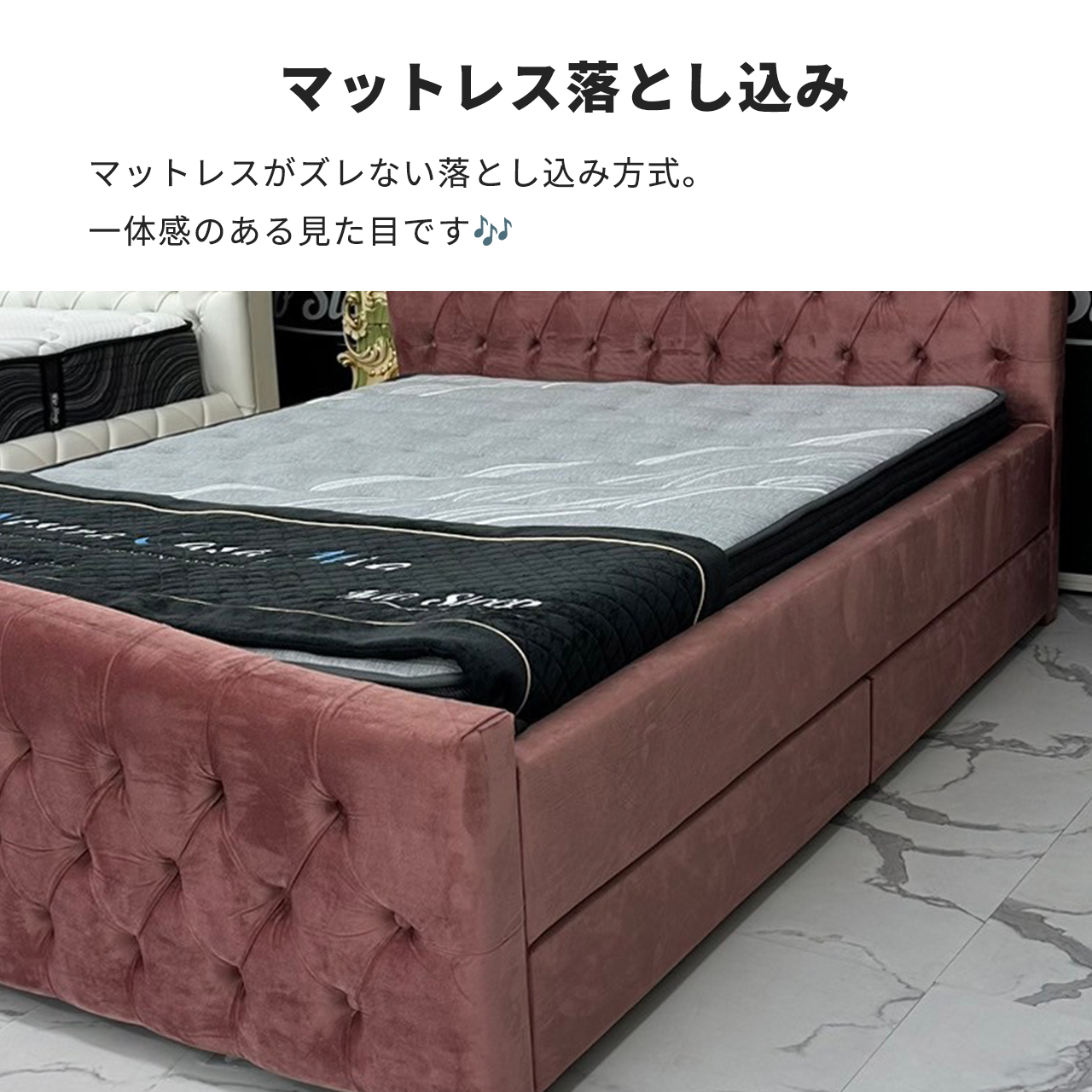 Bella ダブルベッド(ピンク/ボタン)、Dream Ⅱマットレスセット
