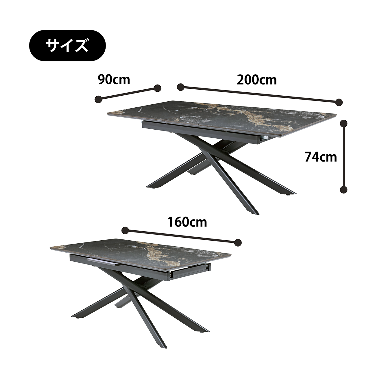 ダイニングテーブル Milano3(ミラノ3)ブラックゴールド